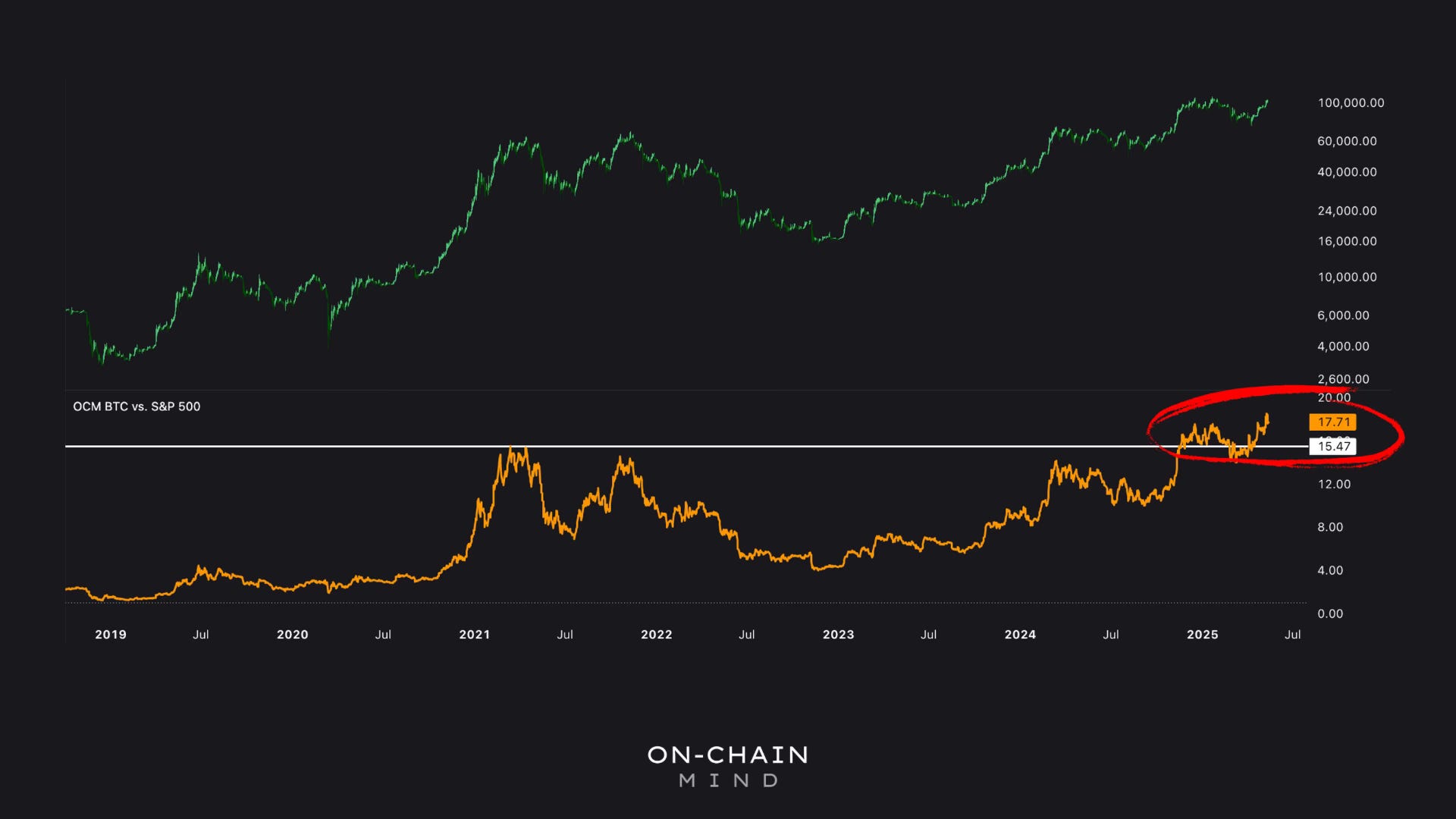 One of the most significant ways to measure Bitcoin’s strength against traditional assets is by comparing how many shares of the S&P 500 are needed to purchase one Bitcoin. Currently, it takes around 17.7 shares of the S&P 500 to buy one Bitcoin—this is the highest ratio Bitcoin has ever reached. This trend is particularly powerful because it reinforces the narrative of Bitcoin as a macro asset, not just a high-risk tech bet. Investors are beginning to view Bitcoin not only as a speculative asset but also as a safe-haven store of value when the global economic outlook turns uncertain.