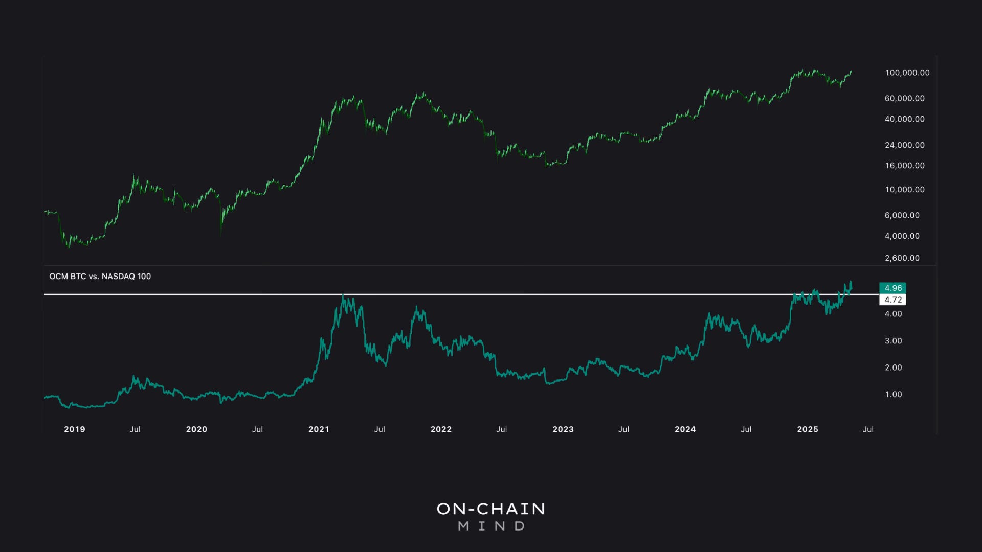 But Bitcoin’s outperformance is not just limited to traditional equities. Bitcoin is also beating the NASDAQ 100, a well-regarded index known for its high-growth tech stocks. Right now, it takes nearly 5 NASDAQ shares to buy a single Bitcoin. This signals a significant shift in capital rotation, with money flowing out of big tech and into Bitcoin. Investors are moving away from speculative tech stocks and seeking the perceived safety of Bitcoin.
