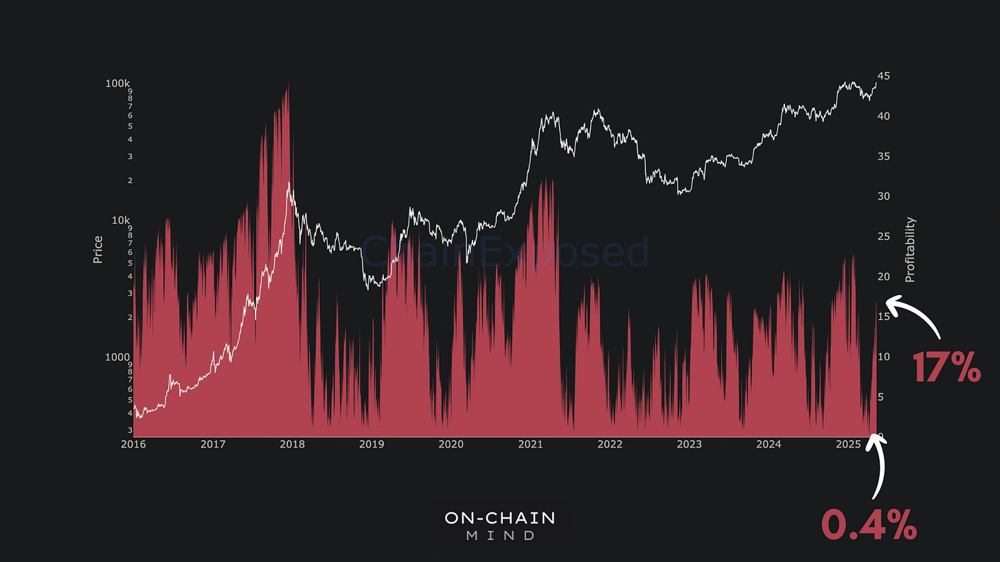This stability is crucial for building a solid foundation for long-term growth. During the last market correction, short-term holder profitability plummeted to just 0.4%, meaning fewer than 1% of recent buyers were in profit. This significant downturn signaled the emotional shakeout of many speculators. However, as of now, the profitability of short-term holders has bounced back to about 17%. While still early in the recovery phase, this return to profitability creates a healthy market environment for Bitcoin, without venturing into euphoric territory.
