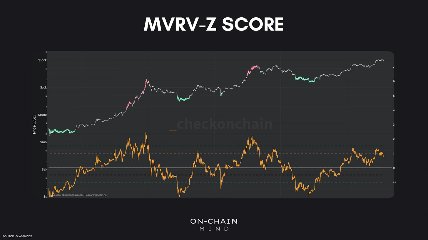 SOPR-Z above 2 σ → Overheated market (red line below).